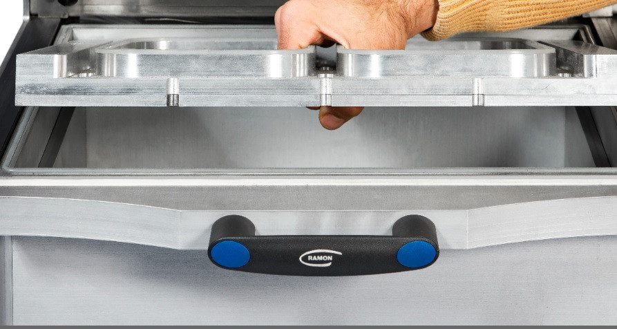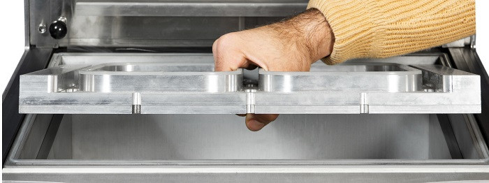 Les moules en aluminium anodisé de cette operculeuse sont soigneusement conçus pour offrir une grande précision lors de l'operculation des barquettes.