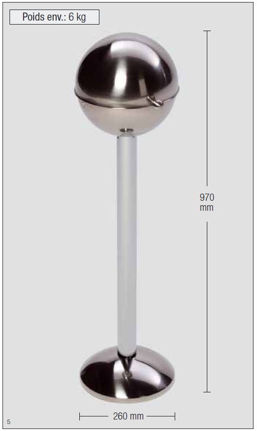 | Réf. TC :989790305 | Cendrier sphérique sur pied | H.970 x Ø 260 | 6 | -