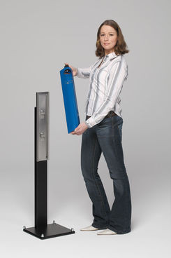 - Version avec pied (fixation au sol possible) de tôles d‘acier galvanisé (revêtu noir) ou d‘INOX