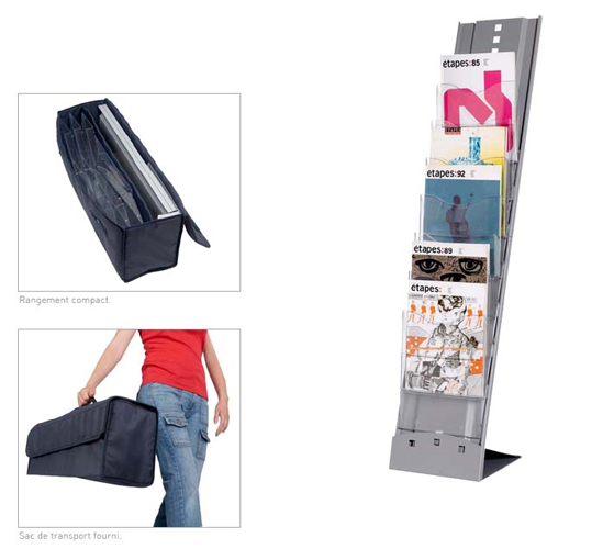 Ce porte brochure est livré avec un sac de transport pour un usage ambulant.