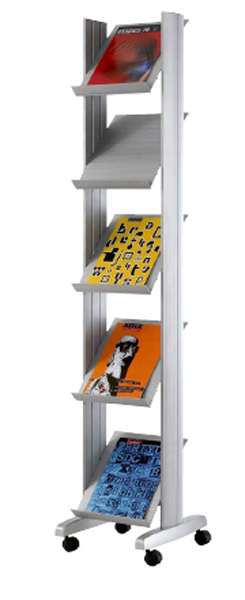 Présentoir mobile à brochures - Format A1 - 5 tablettes