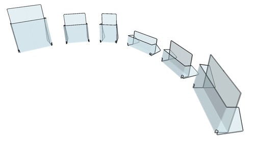 je cherche des présentoirs plexi pour des brochures A4/3 en ligne 2 ou 3 A4/3 et en vertical, à monter moi-même sur deux montants, type planche, ex 5 à 6 de hauteur. Les présentoirs s"encastrant grâce à des pattes ou languette qui font partie du présentoirs 4 par présentoirs, ex de 3 mm de diamètres sur 5 mm de grandeur, et qui s"encastrent dans les trous faits auparavant sur les deux montants, type planche ou autre. Merci pour votre réponse. Merci de me dire s"il est possible de mixer ou 2 A4/3 3 A4/3 par niveau avec par ex avec 1 A4 pour les présentoirs