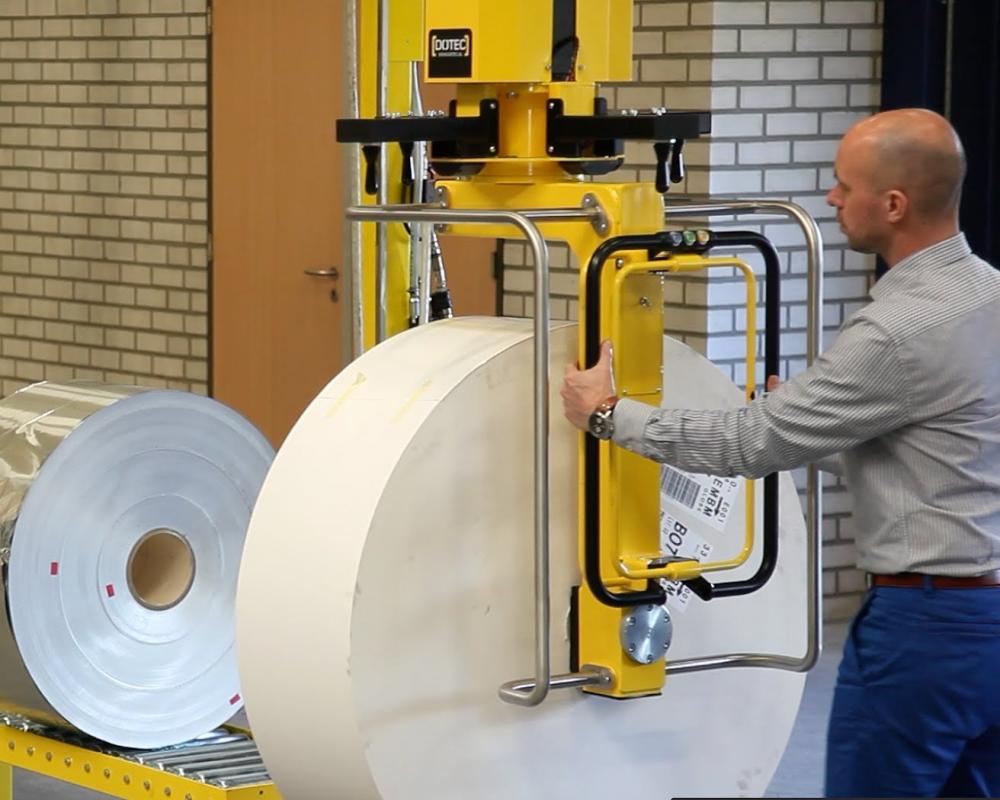 Ce manipulateur aérien de bobine représente une solution ergonomique et complète pour le levage et la rotation des rouleaux et bobines.