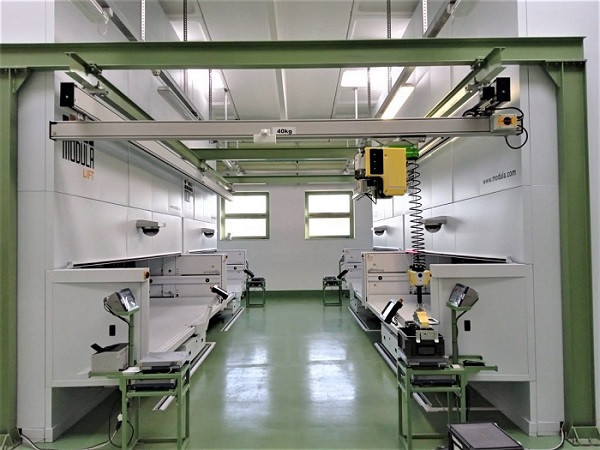 Fixé à un chariot coulissant sous des rails montés au plafond, il offre une capacité de charge allant de 80 à 320 kg et une course verticale atteignant 2,80 m.