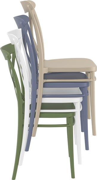- Chaise monobloc réalisée en Polypropylène teinté dans la masse avec injection de fibre de verre pour plus de robustesse.