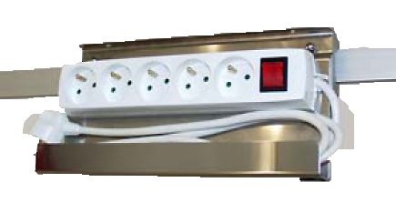 Ce support bloc multiprises est adaptable sous les bords de chaque plateau ou étagère.