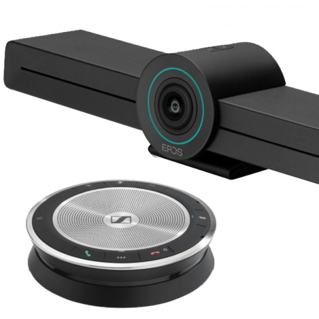 Cette barre vidéo tout-en-un proposée par Epos a été conçue pour les petits espaces de travail type huddle rooms, accueillant jusqu’à 8 personnes. Il en va de même pour le Speakerphone portable SP30T vendu avec, présentant lui aussi des caractéristiques techniques optimales pour une utilisation en petite salle de réunion.
