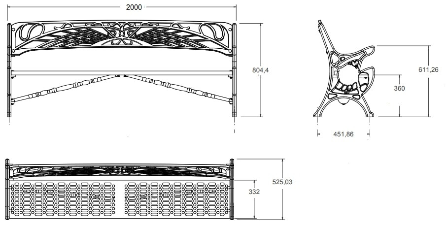 Fonte ductile — Ce matériau reconnu pour sa résistance mécanique et sa longévité permet au banc de supporter des charges importantes et de faire face aux agressions extérieures.