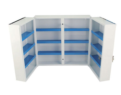 L'armoire à pharmacie à 2 portes en acier idéale pour le stockage sécurisé des médicaments et des fournitures de premiers secours.