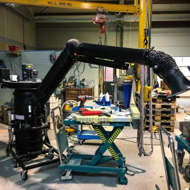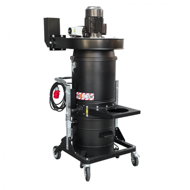 Notre aspirateur dépoussiéreur est muni de roues et équipé d'un ventilateur triphasé. Il est conçu pour aspirer efficacement les poussières en suspension et peut également être raccordé à une scie pour l’aluminium et le PVC. Notre aspirateur/dépoussiéreur se distingue par sa large surface filtrante et son efficacité de filtration de classe M, capable de filtrer des particules jusqu’à 1 micron. Un des atouts majeurs de cet dépoussiéreur est son système de nettoyage manuel du filtre hautement efficace. L’opérateur peut facilement secouer le filtre grâce à un levier situé à l’extérieur de la chambre de filtration, permettant ainsi de déloger la poussière directement dans le récipient de collecte. En option, il est également possible d'équiper l'appareil d'un système de secouage automatique à piston pour le filtre ou d’un mécanisme de nettoyage par contre-courant d’air, optimisant ainsi la maintenance et la longévité du filtre.