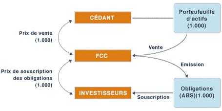 Cette structure ad hoc (SPV en droit anglo-saxon ou FCC en France) finance cette acquisition par une émission de titres (billets de trésorerie, titres de créances, obligations) souscrits par des investisseurs dans le cadre d’un placement public ou privé après évaluation par une agence de notation.