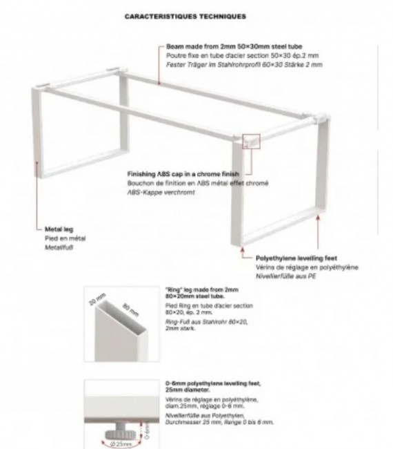 Ce bureau bénéficie d'une structure métallique recouverte d’une peinture en époxy pour augmenter sa résistance.