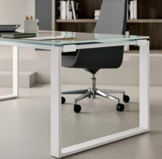 Osez les jeux de reflets et la transparence avec ce bureau en verre.
