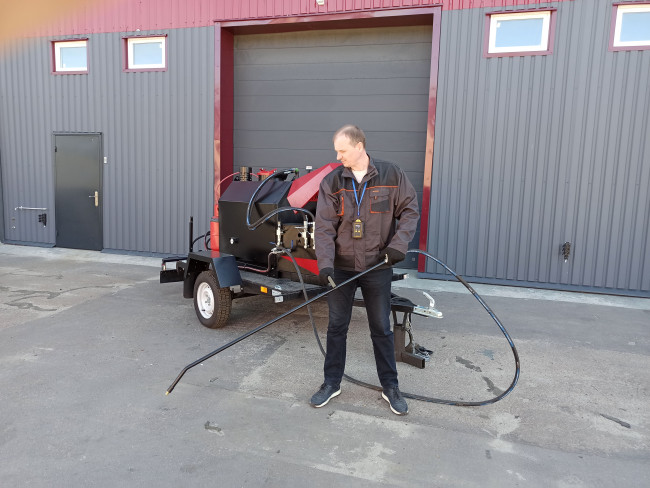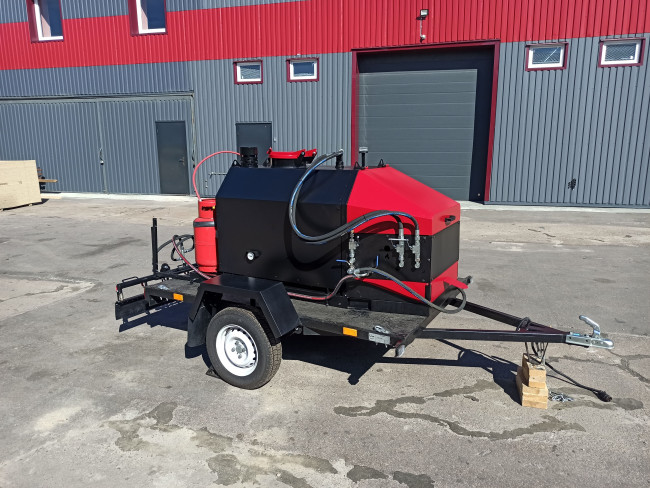 Le pulvérisateur d'émulsion d'asphalte (BS-MODERN-500 tar sprayer) est conçu pour préparer la base avant la pose de l'asphalte, asphalter les zones adjacentes et remplir les joints et les fissures avec de l'émulsion d'asphalte. La livraison de d'émulsion bitumineuse se fait à partir d'un réservoir de 500 litres installé directement sur la plate-forme d'installation. Le système de chauffage permet d'utiliser le pulvérisateur d'émulsion bitumineuse même par temps froid. Il est facile à utiliser. Il dispose de son propre système de lavage. Il est fabriqué sur le châssis ou monté sur une remorque.