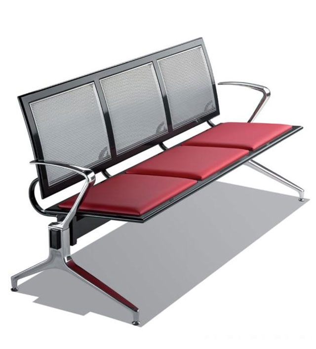 Système d’assises sur poutre en acier verni, destiné aux grands espaces d’attente, réalisé: