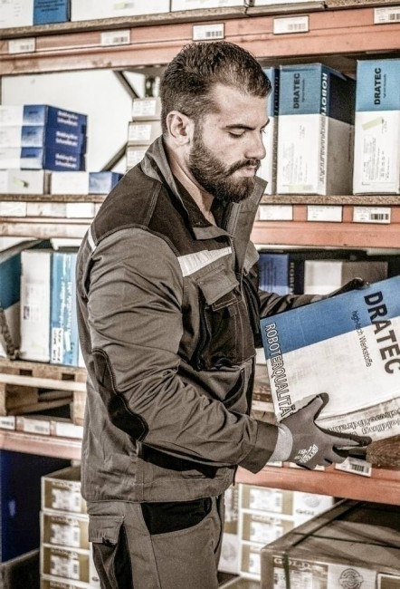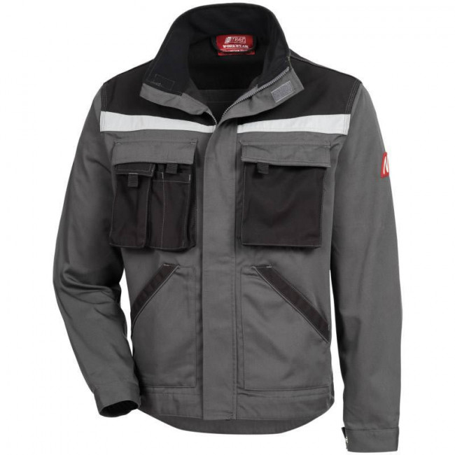 Ce blouson de travail à fermeture à glissière frontale continue avec protection du menton contient deux poches de poitrine avec rabats et poche supplémentaire pour smartphone.