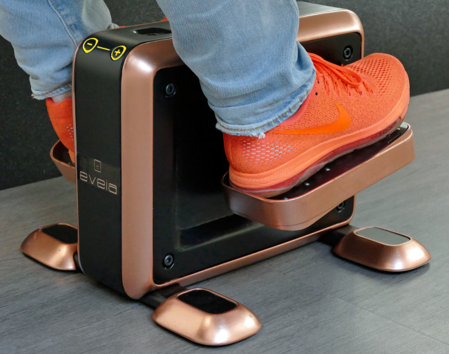 Pédalez tranquillement sans déranger vos collègues ou les membres de votre famille. eveia – Premier est un mini vélo de bureau connecté qui a un mouvement ultra-lisse et doux. Cela fait du pédalage une activité inconsciente afin que vous puissiez concentrer votre attention sur votre travail ou d’autres activités. Celui-ci a été conçu par des designers afin de l'associer esthétiquement aux espaces intérieurs. Et le mouvement a été développé avec des ergonomes pour respecter vos articulations. La solution eveia –Premier est un dispositif médical certifié CE qui est fabriqué et assemblé 100% en France. Son programme d'activités vous permettra depuis votre smartphone de suivre votre nombre de pas quotidien, d'atteindre vos objectifs santé et de relever des challenges avec vos collègues ou vos amis.