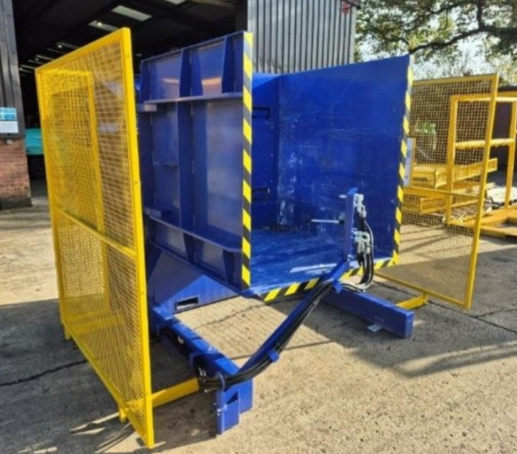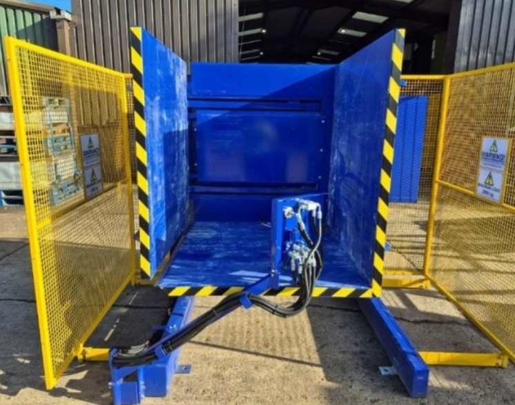 La machine est équipée de grilles hautes de 2 m, assurant la protection des opérateurs lors du retournement de charges lourdes ou fragiles.