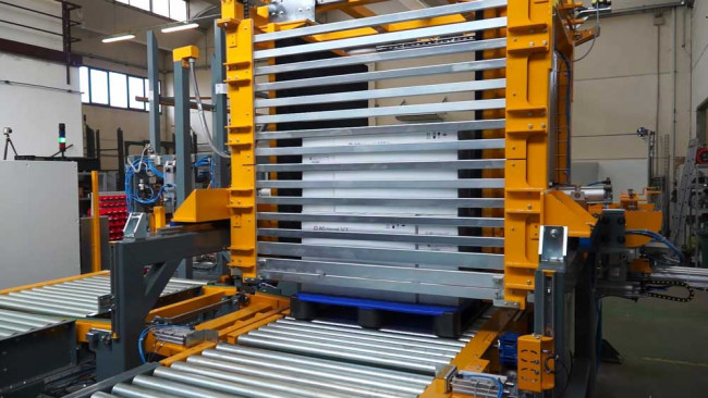 Le système de transfert de palette implique le transfert de matériaux à l’aide du changeur de palette « Master Inverter ». Il est capable de changer la palette du bois au plastique / aluminium avec un mouvement bidirectionnel vers la production et vice versa. Le système logistique de changement palette « Master Inverter » permet le transfert de produit en poussant et en tenant sur trois côtés. Le changeur de palette « Master Inverter » est inséré à l’intérieur d’une cabine de dépoussiérage.