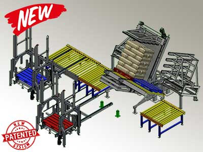 Le déplacer automatique de palette « L-Shape Inline APS » est un retourneur de palettes entièrement automatique qui permet un changement de palette très rapide, ayant inclus un système empileur/depileur avec robot.