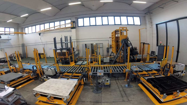 Le système de manutention de charge garantit une performance de 40 palettes par heure. Le« Q-Shape » est un système de manutention de charge entièrement automatique permettant un changement de palette très rapide. Le plus bas la plate-forme est équipée d’un convoyeur à rouleaux, de sorte que la machine peut être placée dans une ligne logistique garder un flux unidirectionnel.
