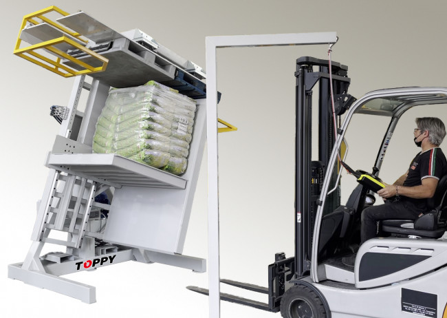 Cette solution ingénieuse qui, à l'aide d'une plate-forme de glissement, permet à la machine de changer la palette en toute autonomie, en déplaçant les palettes SANS la manualité de l'opérateur.