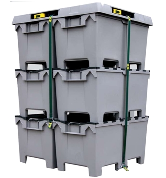 Bac plastique grand volume à couvercle, est le bac qui se manutentionne sans palette. Cette innovation brevetée est un véritable compromis entre les caisses palettes encombrantes et les petits containers plastiques.