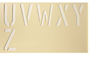 Réf. TC : 77155102Pochoirs marquage 900 x 500 140 x 210 Lettre U à Z Lettres et chiffres