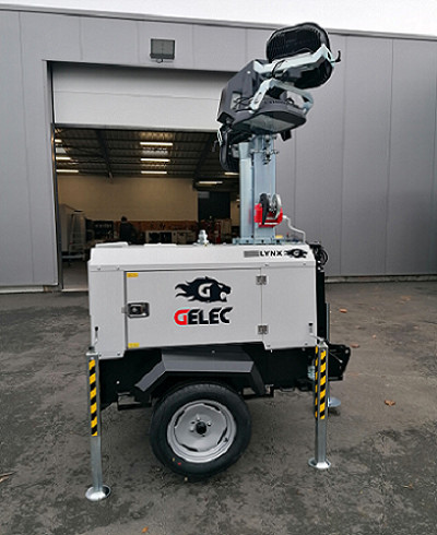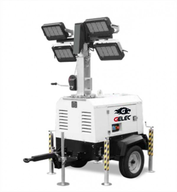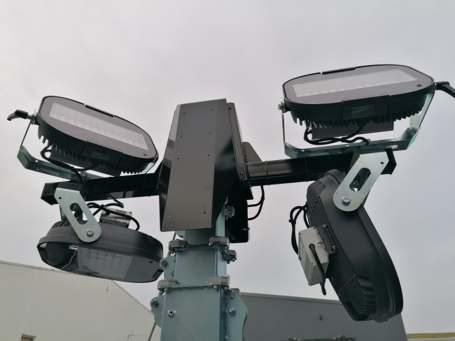 Les mâts d'éclairage avec stabilisateurs permettent la fourniture autonome de lumière grâce à son groupe électrogène intégré.