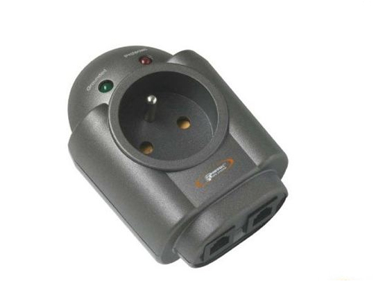prise française unique , afin d'assurer une protection électrique de Box internet ou de fax contre les problèmes électriques (transitoires du réseau).