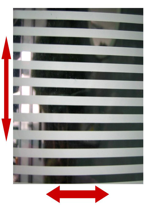 Le Film décoratif à bandes horizontales pour vitre peut se poser à l’horizontale ou à la verticale, et est très souvent utilisé dans les bureaux pour marquer la séparation sur des cloisons vitrées.