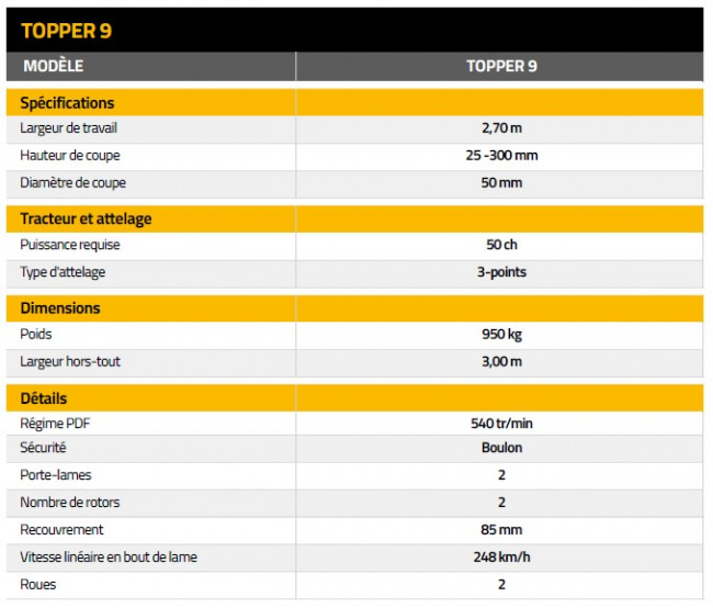 Sa largeur de travail de 2,75 m, ses rotors puissants et ses lames pivotantes renforcées à courant ascendant assurent la productivité.