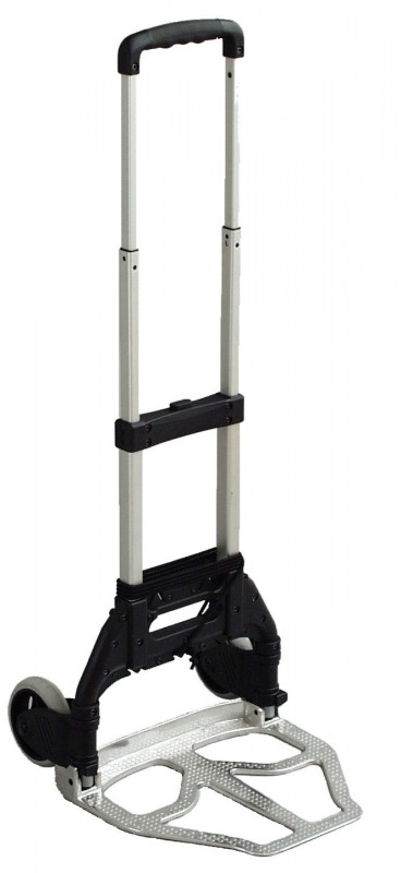 Notre diable pliable léger en aluminium extrêmement plat, équipé d'une grande bavette pliante pour le transport de charges volumineuses. Ils se transforment en quelques secondes en un objet compact facile à ranger.