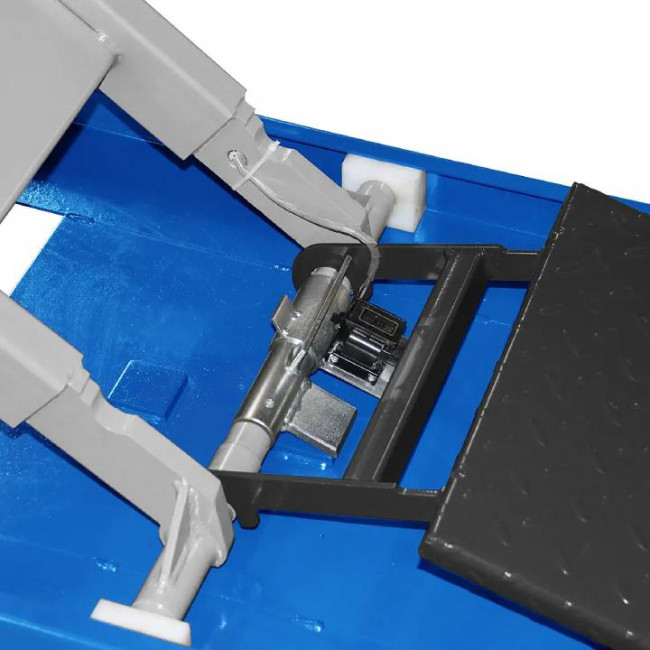 La plateforme offre une longueur utile de 222,75 cm et peut accueillir des motos avec un empattement allant jusqu’à 2,5 mètres. La cale de roue avant est positionnable à différents endroits sur la table. Vous adaptez ainsi votre table de levage moto atelier à différents types de motos, sans compromis sur la stabilité.