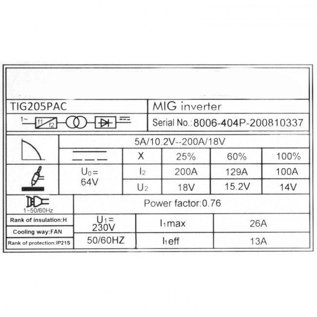 - Type de soudage : HF TIG / LIFT TIG / MMA