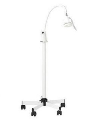 - Lampe d'examen halogène 50 Watts sur pied 5 branches à roulettes, coloris blanc