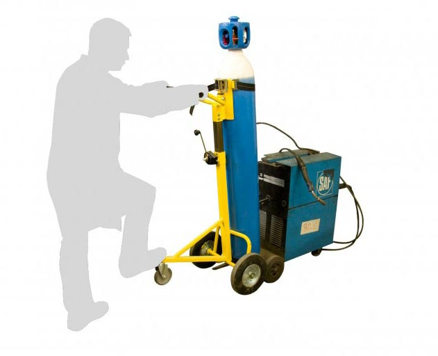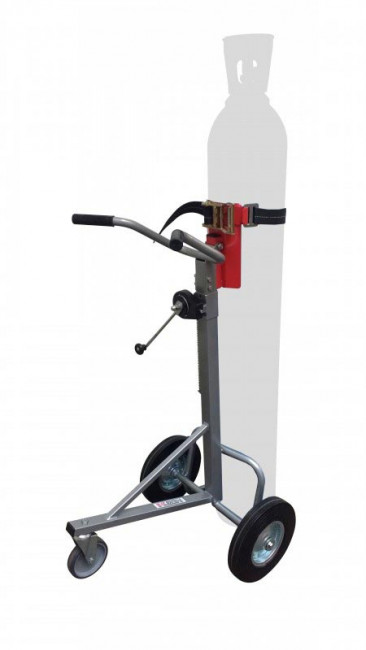 Il s'adapte pour différents diamètres de bouteilles grâce à son mât réglable, notamment pour déposer ou retirer une bouteille d'un poste à souder.
