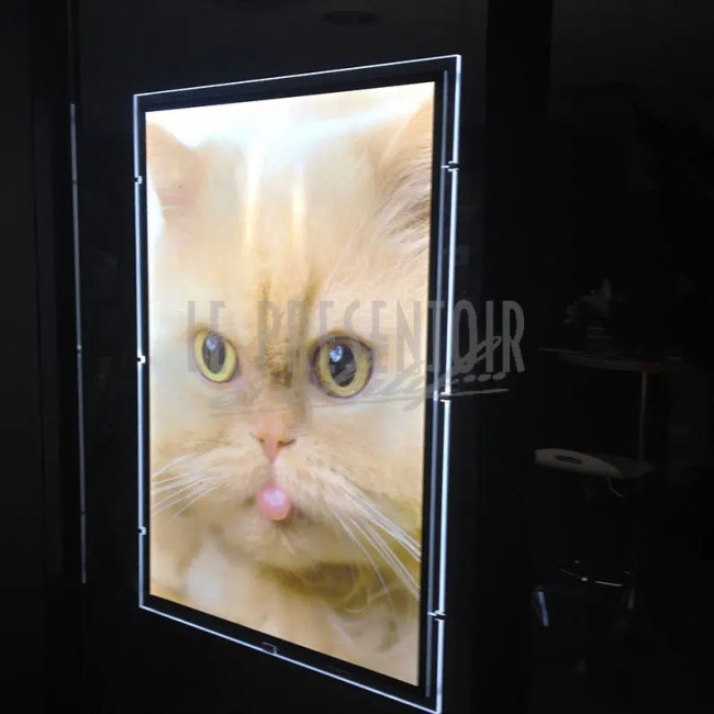 Bonjour, pour répondre à une demande client, je recherche des cadres lumineux pour affichage recto verso avec fixation au plafond. Le support doit avoir un cadre transparent, dans la même idée que la photo du produit. Le format d"affichage doit être de ~700 x 1000 mm Merci d"avance opur votre retour Salutations