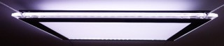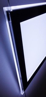 Porte affiche LED avec chassis noir et rebord biseauté.