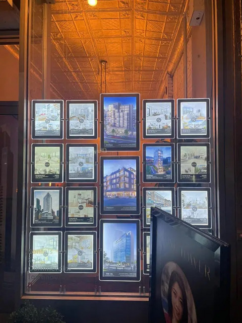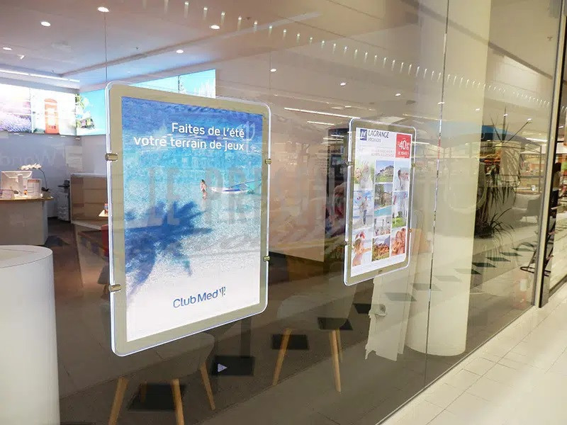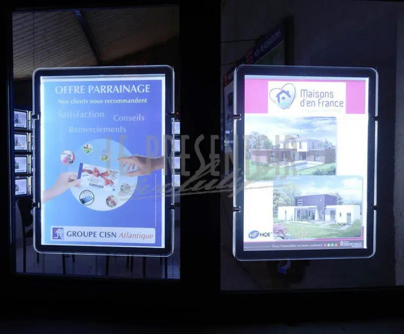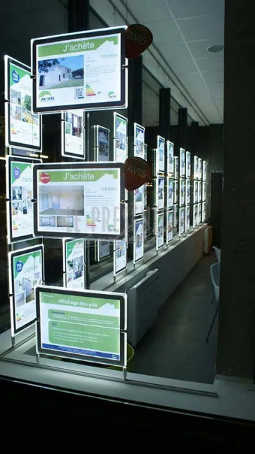 Ce porte affiche double faces LED met en valeur la vitrine de votre agence immobilière.