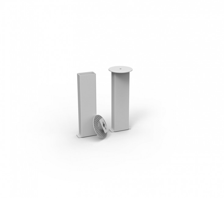 Chaque ancrage présente un diamètre de fixation Ø 60 mm et une hauteur d’ancrage de 195 mm, assurant une parfaite stabilité du cadre au sol.