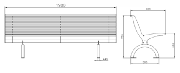 Longueur : 1980 mm Finition galvanisée Siége et dossier soudés sur trois supports de secousse laser Supports en tubulaire en forme d'arc