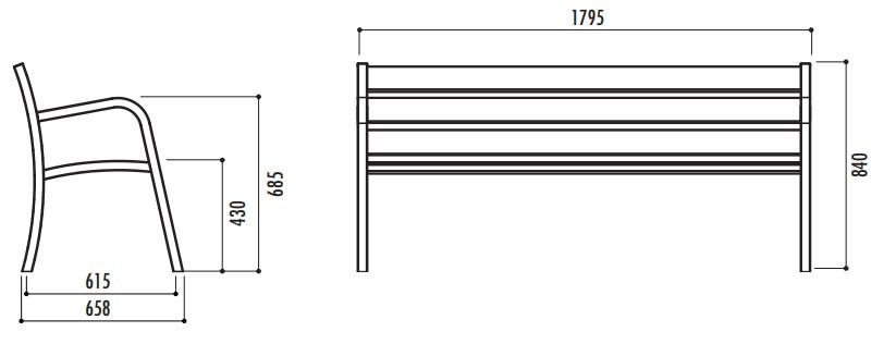 Bonjour, Je souhaite un banc le plus long possible avec des accoudoirs tout métallique car il est dédié aux personnes âgées d"un EHPAD. Quantité :2