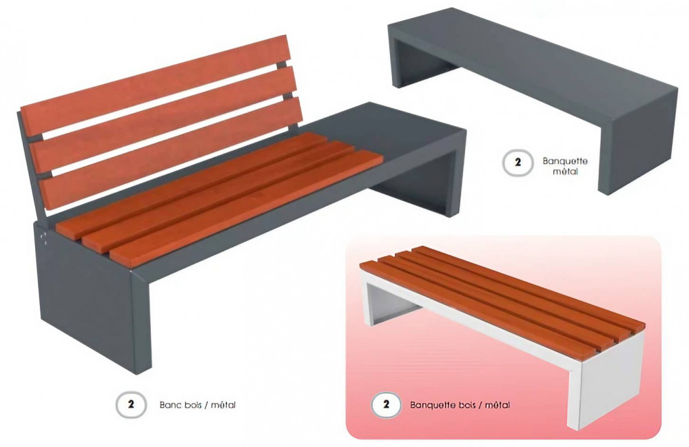 Banc public – Métal et bois – L.1960 mm – H. assise 450 mm
