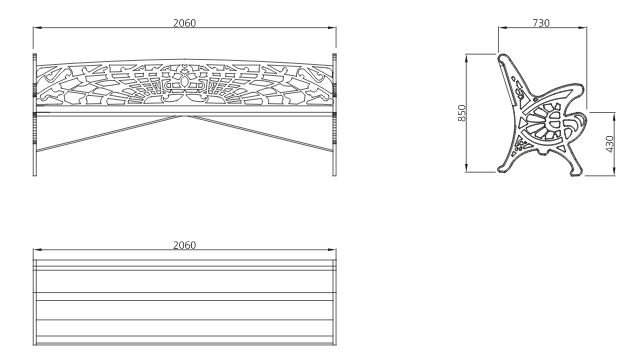 Banc en fonte ductile - Dim. L2060 x H850 x P730 mm