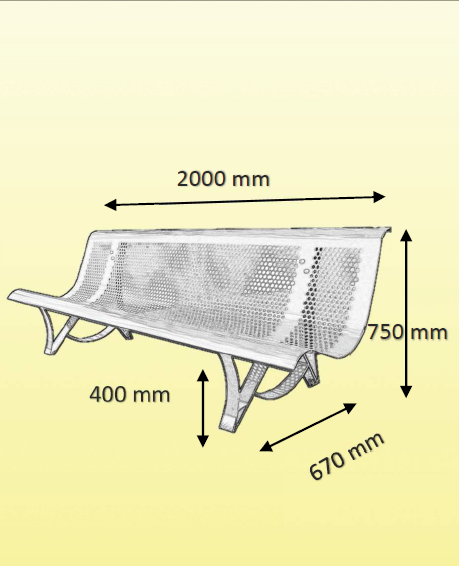 | Réf. TC :140429162 | Banc public acier assise en tôle | 2 mm | 2000 x 750 x 670 mm | -