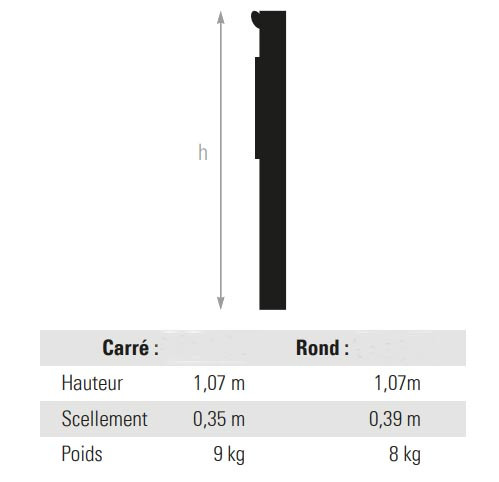 Le scellement de 0,35 m ou 0,39 m garantit une assise solide même en cas d’utilisation intensive.