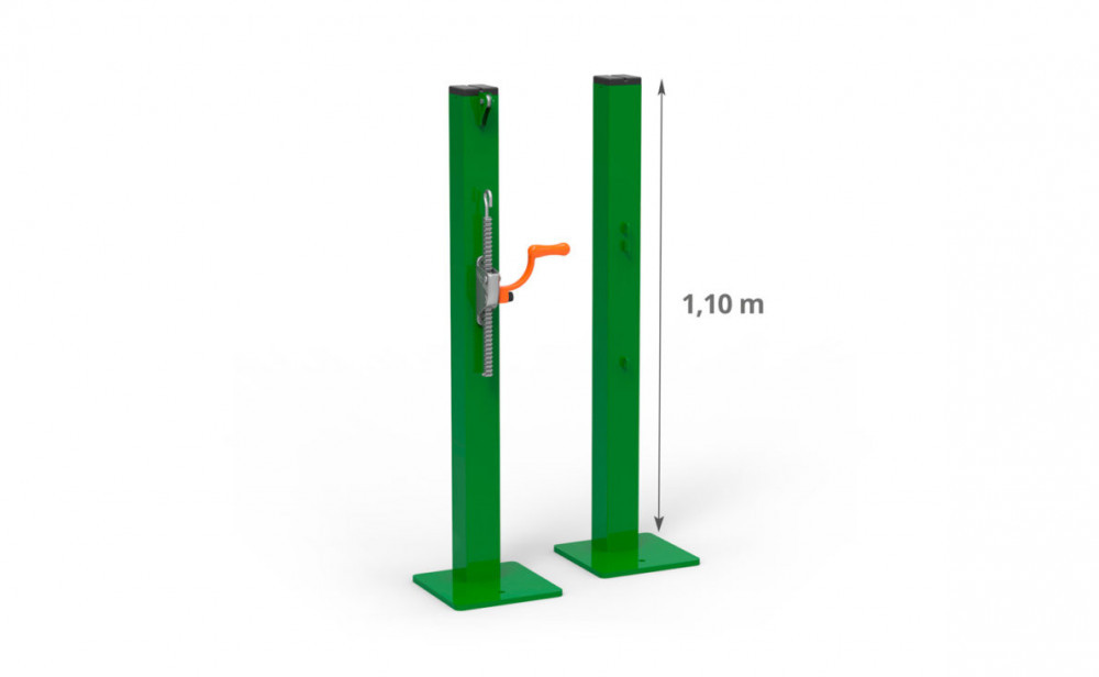 Le treuil à crémaillère intégré garantit une tension parfaitement maîtrisée du filet, adaptée aux exigences des terrains de compétition.