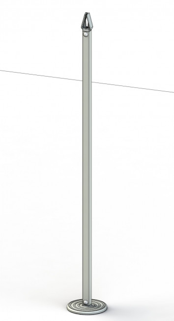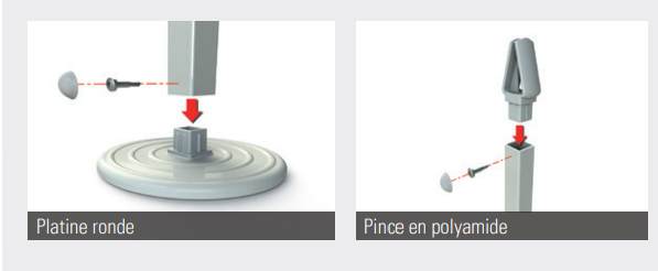 Chaque poteau est monté sur une platine ronde en polyamide de Ø 140 mm, spécialement étudiée pour assurer une bonne stabilité lors de la mise en tension du filet.