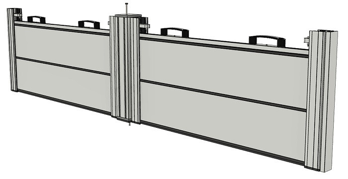 - Pour protéger de plus grandes ouvertures, il suffit d’installer un poteau intermédiaire amovible afin de relier plusieurs barrières entre elles et créer ainsi un barrage étanche.